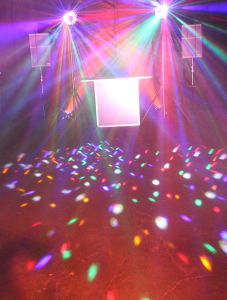 - Twee discolampen die honderde stralen door de ruimte stralen